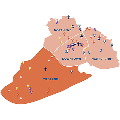 If people tell you the West End is up and coming, we have to beg to differ—this neighborhood is already there. Featuring Portsmouth’s only downtown supermarket and more than a handful of excellent places to nosh – plus three breweries at last count—what more could you ask for? How about a place to smash objects, splash paint, and hatch an escape plan? Yep. Some might say: The West End is the Best End.