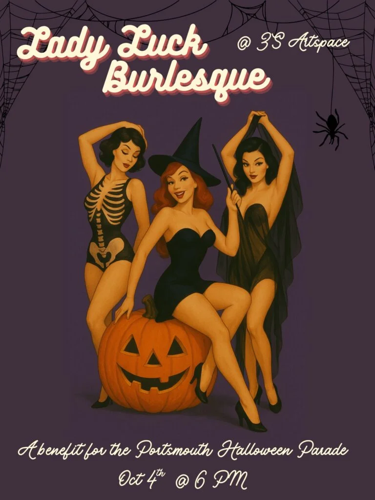 3S Artspace warmly welcomes Lady Luck Burlesque to our stage for a fundraising show to support the Portsmouth Halloween Parade of 2025!